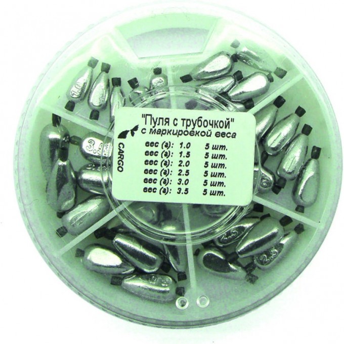 Грузила SALMO ПУЛЯ с трубочкой 6 секций 1,0-3,5г 70 набор 8527-070